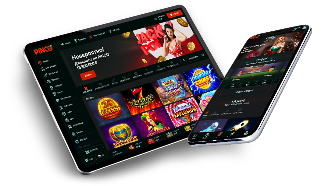 Скачать мобильное казино Пинко на Андроид или Айфон вы можете прямо сейчас на этой странице. Запускайте игровые автоматы на реальные деньги Live-игры, краш и лотереи прямо на вашем смартфоне. Больше нравятся ставки на спорт? В мобильном приложении Pinco casino вы сможете заключить пари на сотни спортивных событий.